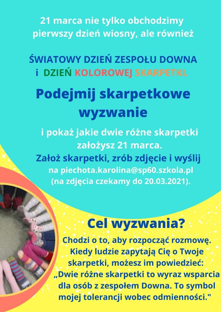 “Kolorowe skarpetki włóż 21 marca, tolerancyjny bądź zawsze!”