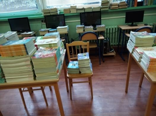 A co teraz dzieje się w szkolnej bibliotece? Wracają do niej podręczniki. Odpoczną w czasie wakacji, czekając na kolejnych uczniów.